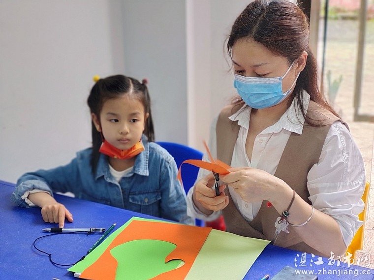 在亲子手工环节,为了给绘本中的小绿重新拥有一片树林。情暖湛江志愿者为亲子们纷发彩色卡纸、剪刀等材料,一步一步指导,孩子们认真制作,家长们在旁协助,一棵棵茂密的大树呈现在眼前,孩子们脸上露出了灿烂的笑容。