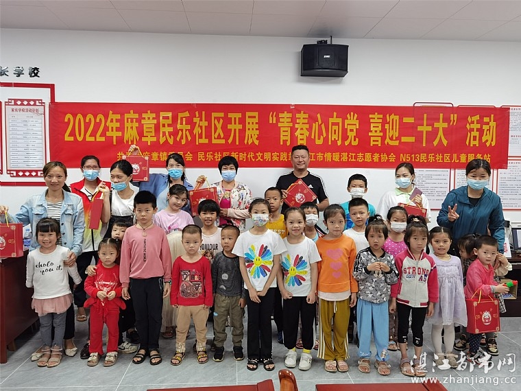为深化未成年人思想道德建设,培养新时代少年蓬勃向阳的形象,迎接党的二十大胜利召开,共青团麻章镇委员会、民乐社区新时代文明实践站、湛江市情暖湛江志愿者协会、N513民乐社区儿童服务站于423日开展“青春心向党 喜迎二十大”活动。