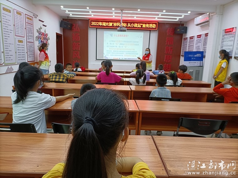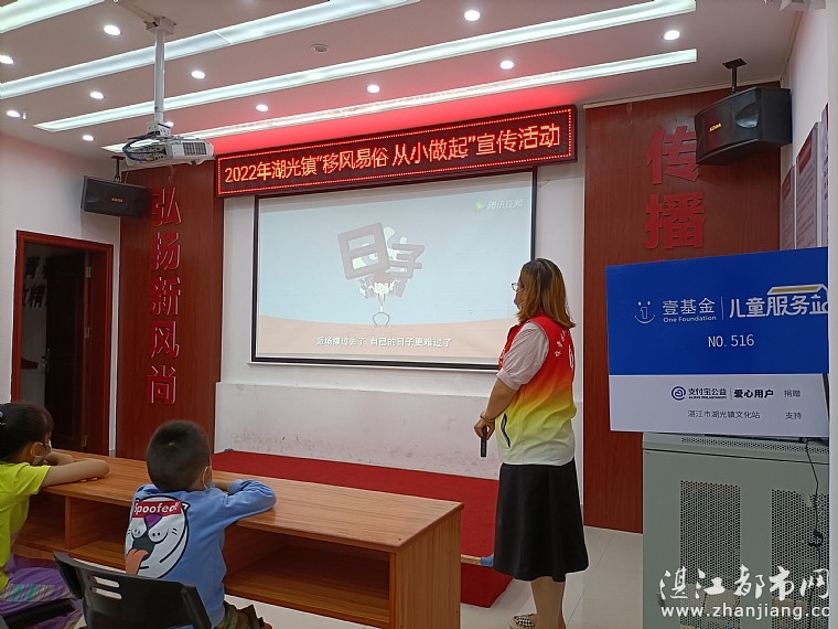 活动中,情暖湛江志愿者通过PPT和视频讲解什么是移风易俗,倡导孩子们破除陈规陋习,倡导文明新风,传承传统美德,弘扬良好家风,引导孩子们从小有抵制婚丧事大操大办、封建迷信活动的意识。