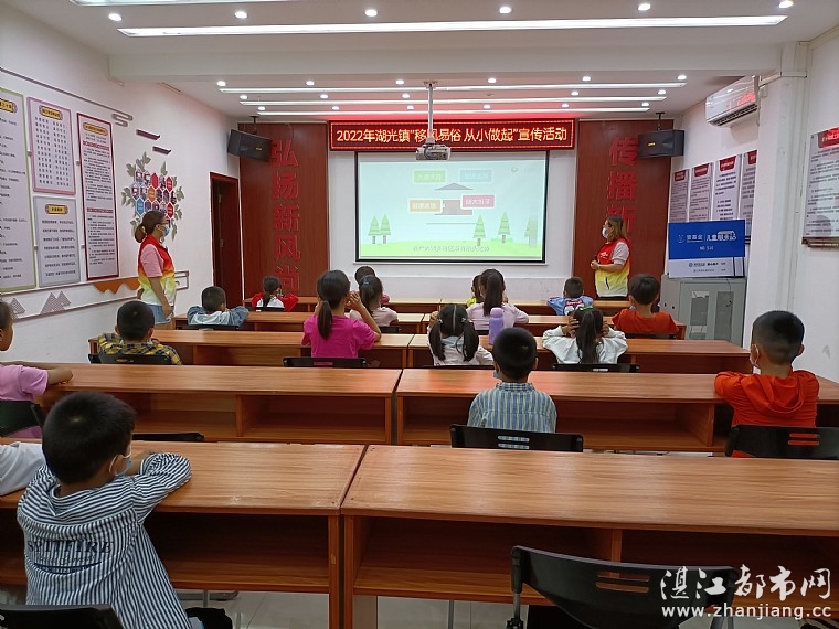 为了大力弘扬中华优秀传统美德,推动移风易俗,树立文明新风,2022年4月23日由湖光镇团委、湖光镇创文办、湖光镇新时代文明实践所、湖光镇妇联、湖光镇综合文化站、N516壹基金儿童服务站(湖光镇文化站)、湛江市情暖湛江志愿者协会开展2022年湖光镇“移风易俗 从小做起”宣传活动。共有儿童、志愿者25人参加了此次活动。