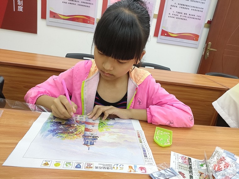 情暖湛江志愿者先通过PPT和视频介绍了“五一劳动节”的由来,介绍了各行各业不同阶层的劳动者,并说出他们的辛苦。再手工制作钻石画,志愿者老师讲解完制作步骤和注意事项后,小朋友们迫不及待地拿起画布和点钻笔准备开始动手制作了,在志愿者哥哥姐姐们的细心指导下,小朋友们认真仔细地进行选钻、点钻、粘贴等工序,很快梦幻的小马宝莉、呆萌的小鹿、鲜花、草坪......都陆续出现在画布上了。