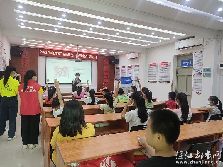 为了进一步提高孩子们的禁毒意识,2022年5月28日由麻章区教育局、湖光镇团委、湖光镇禁毒办、湖光镇创文办、麻章分局湖光派出所、湖光镇新时代文明实践所、湖光镇妇联、湖光镇综合文化站、融和社工、N516壹基金儿童服务站(湖光镇文化站)、湛江市情暖湛江志愿者协会开展2022年湖光镇“拒绝毒品 守护幸福”主题活动。共有儿童、志愿者29人参加了此次活动。