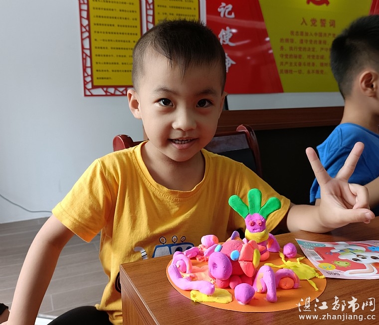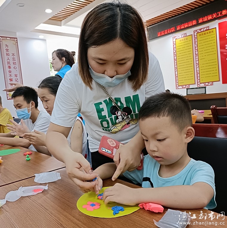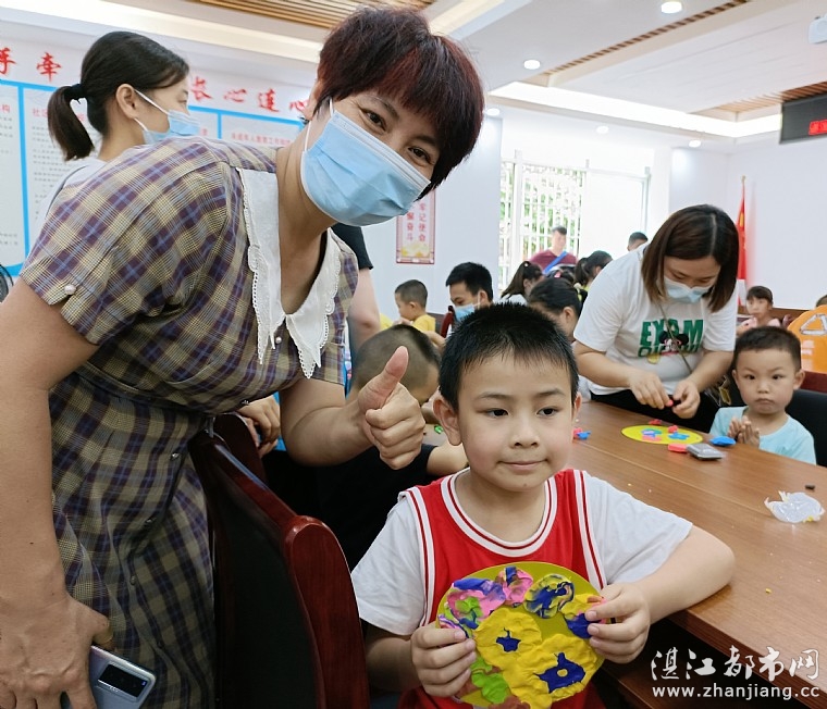 玩完游戏,情暖湛江志愿者把准备好彩泥、卡纸,发给孩子们进行手工制作,孩子们在工作人员和家长的带领下,一幅幅精美、漂亮的手工彩泥作品跃然纸上。