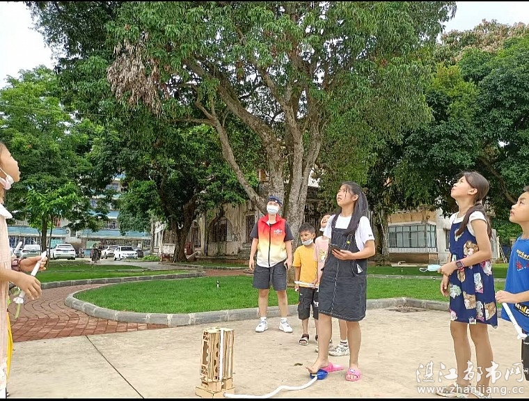 来到了激动人心的时刻--火箭发射。孩子们把这些成果拿到户外,在志愿者姐姐和老师的指导下,一架架载着孩子们的航天火箭在大家的操作下“嗖”的一声飞向上空。“哇,太神奇了!”孩子们仰着头,兴奋地高喊,一脸的惊喜。