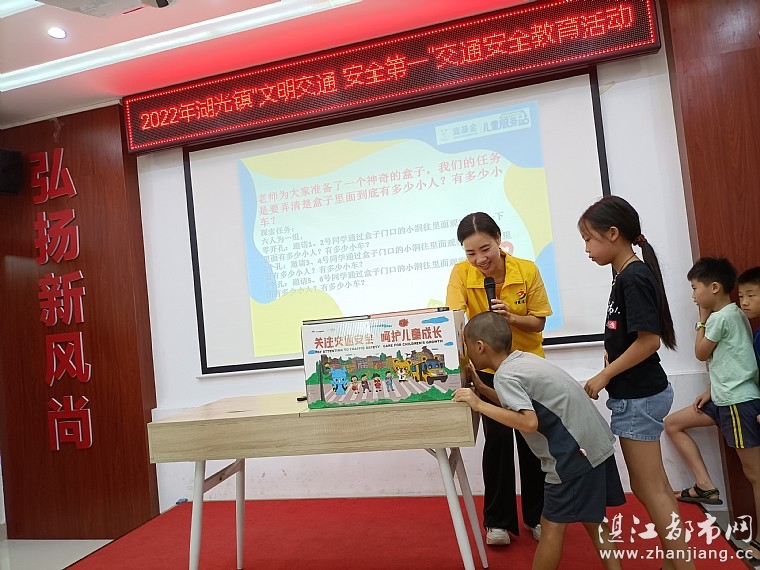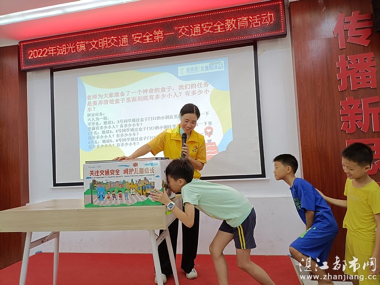 为进一步推进交通安全宣传教育活动,增强孩子们的交通安全意识,全面减少交通事故发生,2022年7月16日由湖光镇团委、湖光镇创文办、湖光镇新时代文明实践所、湖光镇妇联、湖光镇综合文化站、N516壹基金儿童服务站(湖光镇文化站)、湛江市情暖湛江志愿者协会开展2022年湖光镇“文明交通 安全第一”交通安全教育活动。共有儿童、志愿者44人参加了此次活动。