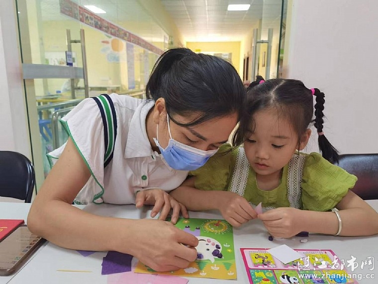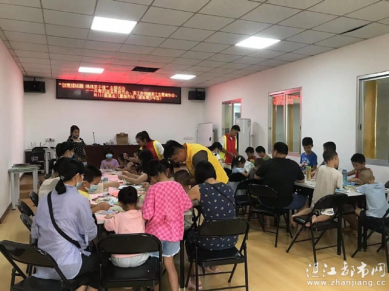 活动开始前,情暖湛江志愿者给孩子们认真讲解揉纸画制作过程。揉纸画不用剪刀,不用水彩,需要把彩纸搓成小球,然后拼摆成图案就完成。家长和小朋友们听得很认真,爸爸妈妈负责揉纸团,宝贝们负责粘贴。