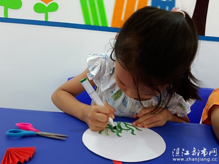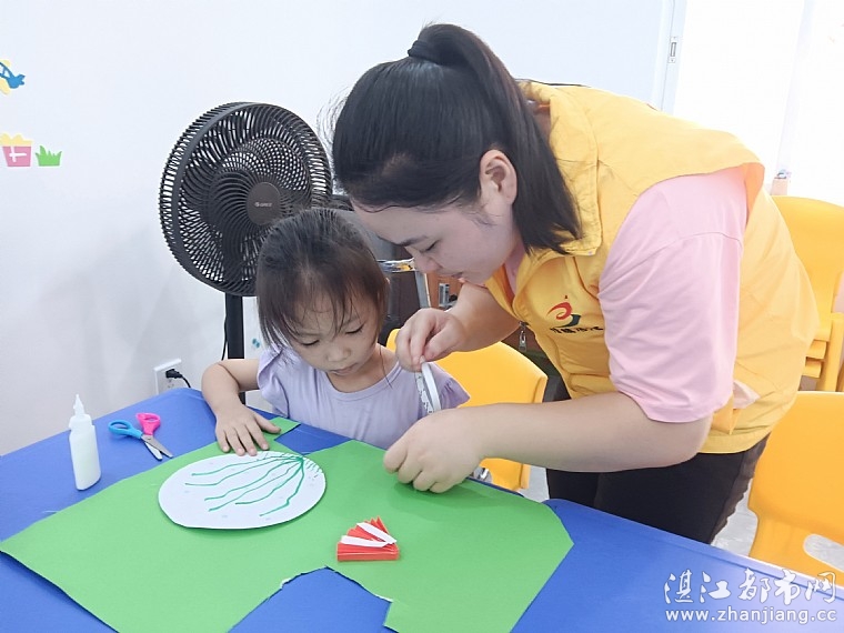 情暖湛江志愿者向孩子们介绍折纸的历史由来,并简单的讲解折纸泡泡鱼的方法及注意事项。孩子们在志愿者的带领下,利用卡纸、彩笔等进行创作。