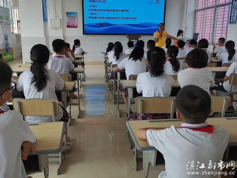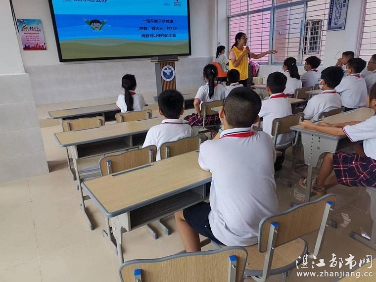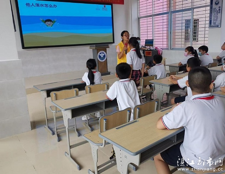 情暖湛江志愿者跟同学们讲防溺水安全知识,自己落水和他人落水怎么办。
