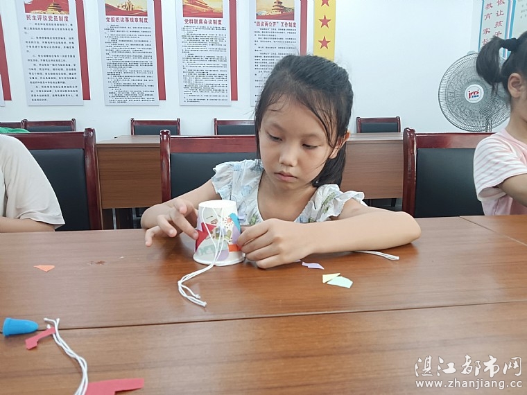 随后带领大家做环保手工折纸风铃,把不用的彩纸边角料、喝完的饮料瓶、麻绳等材料发给大家,孩子们在志愿者的带领下进行风铃制作。孩子们觉得非常神奇,原来在自己眼里不用的东西,也可以变废为宝,制作成漂亮的装饰品。