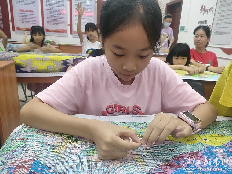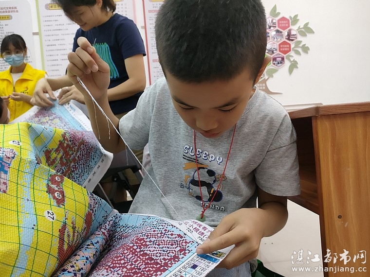 最后是十字绣的手工制作。老师向大家简单简单介绍了十字绣的针法和步骤,在家长的引导和志愿者的协助下,孩子们干劲满满,耐心十足,针线在他们的小手中飞舞,看着针线绣了一格又一格,成就感不由自主地跃于脸上。