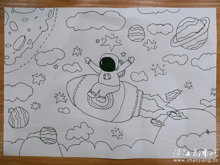 最后小朋友们用彩色的画笔,描绘出一幅幅美丽的太空,激发他们探索太空的兴趣。