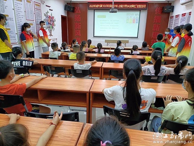 情暖湛江志愿者用PPT和视频向孩子们普及垃圾分类的原因、垃圾分类的方法以及垃圾分类的好处,让大家意识到垃圾分类的重要性。