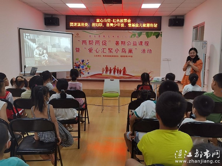 为增强孩子们的爱国意识与历史责任感,弘扬民族精神,让孩子们从小在心灵种下爱国精神的种子。2022年8月19日上午,由共青团遂溪县委员会、遂溪县青少年宫、湛江市情暖湛江志愿者协会、N1111壹基金儿童服务站(遂溪青少年宫)联合开展暑期的第三节公益课程“童心向党·红色故事会”主题活动。
