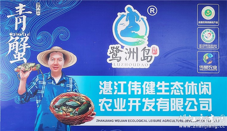 南三岛古称鹭洲岛,故湛江市伟建生态休闲农业开发有限公司陈伟先生创立鹭洲岛牌青蟹。2009年,陈伟先生携经营机械赚的钱回到南三开办伟健家庭农场。2017年“一村一品”发展特色产业,陈伟先生开始养殖青蟹,走绿色生态发展的路子推动乡村振兴。南三青蟹于2018年获湛江·东盟农产品交易博览会农产品金奖,获2018年度“湛江市十大扶贫明星产品”称号,入选2021年第一批全国名特优新农产品名录,并被录入广东省地方志。鹭洲岛水蟹、奄仔、重皮膏蟹、肉蟹、黄油蟹……无论是哪个阶段的青蟹都美味,满足不同食客的口味与喜好。