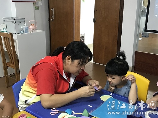 为了表达对老师的爱意,小朋友们很认真的在学折纸花。