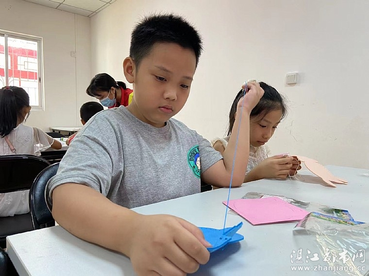 很多孩子都是第一次拿起针线,在情暖湛江志愿者的指导下,孩子们掌握了基本的针法、缝法,学会了穿针引线、拉线打结等针线活的基本流程,操作技巧。