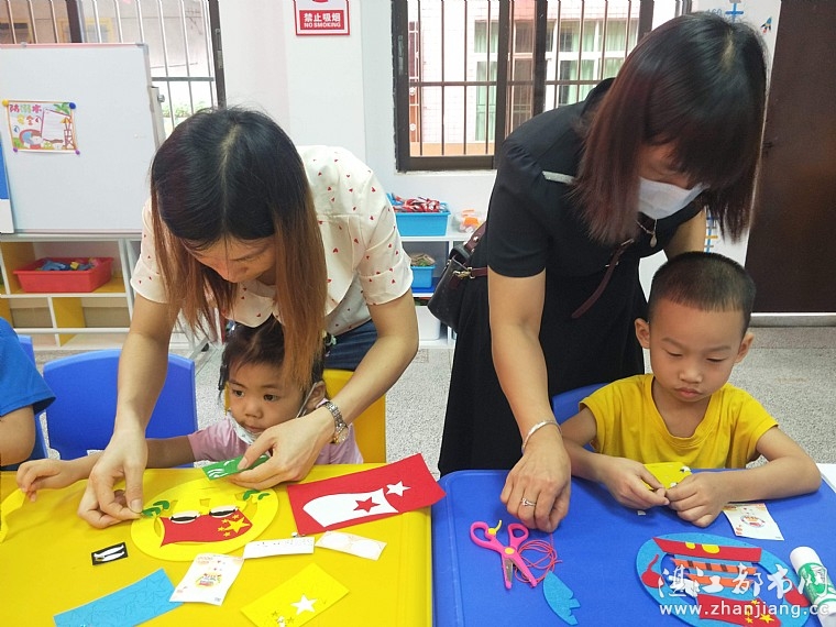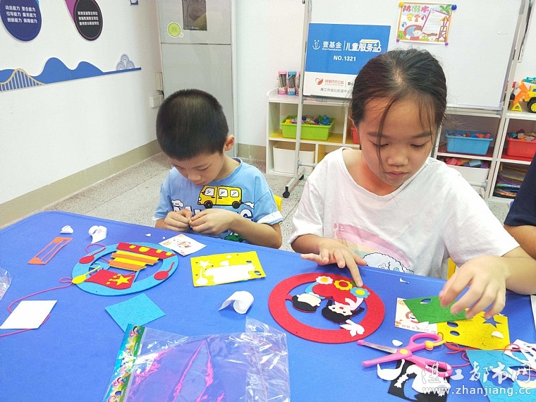 然后专职老师带着孩子们手工制作国庆节挂件,心灵手巧的孩子们在专职老师的指导下,认真地制作完成了一个个精美的国庆节挂件,尽管孩子年龄不大,但是他们虚心学习,认真对待的精神值得我们表扬,这份小小的手工作品也表达了他们对祖国母亲的敬爱和祝福。