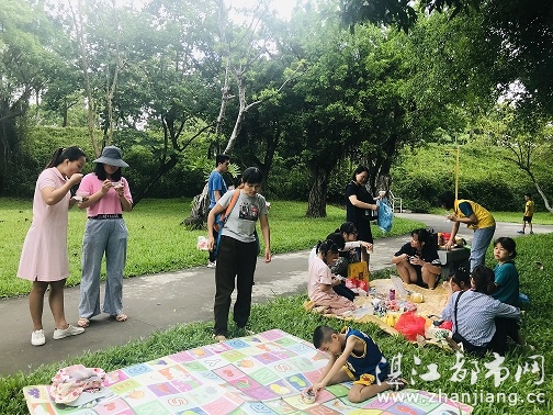 大家席地而坐,妈妈给小朋友们讲述有关“重阳节”节日的来历与习俗。
