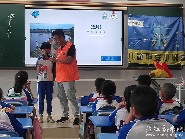 课堂上,情暖湛江儿童平安小课堂公益讲师以猜谜语的方式,开讲与生活息息相关的水。公益讲师邀请同学们参加闭气挑战,谈一谈他们长时间闭气的感受,并引导他们思考溺水者的真实反应。同学们通过观看视频,认识溺水的特点与危害,知道哪些行为容易导致溺水,哪些地方容易发生溺水危险。接着,公益讲师给同学们发放卡片,让他们在卡片上容易发生溺水的地方进行危险系数打分,并说明原因。制作应急救生衣环节,公益讲师邀请三组同学,进行现场比赛。同学们全程投入到课程中,积极举手回答问题,参与课堂互动。公益讲师还鼓励大家将当天学到的防溺水知识和父母、身边的朋友分享,并且带领他们一起喊出“生命至上,安全第一”的口号。