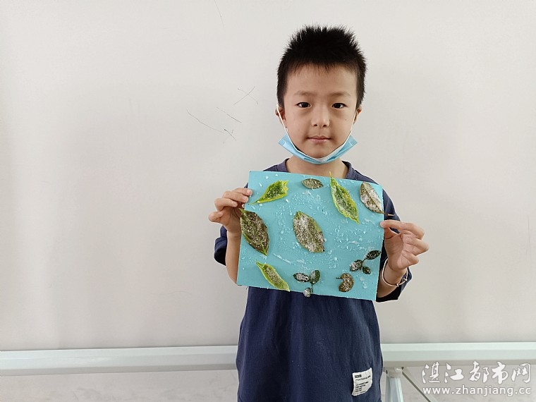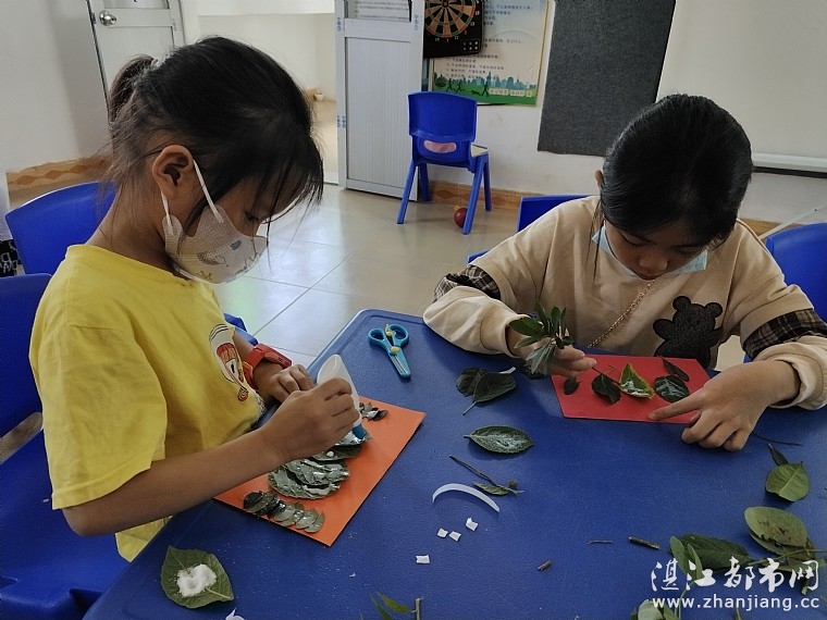 接着情暖湛江志愿者带领孩子们利用卡纸、树叶、白乳胶描绘了“我眼中的霜降”,既锻炼了动手能力,也加深了霜降的相关习俗和知识在小朋友们脑海中的印象。