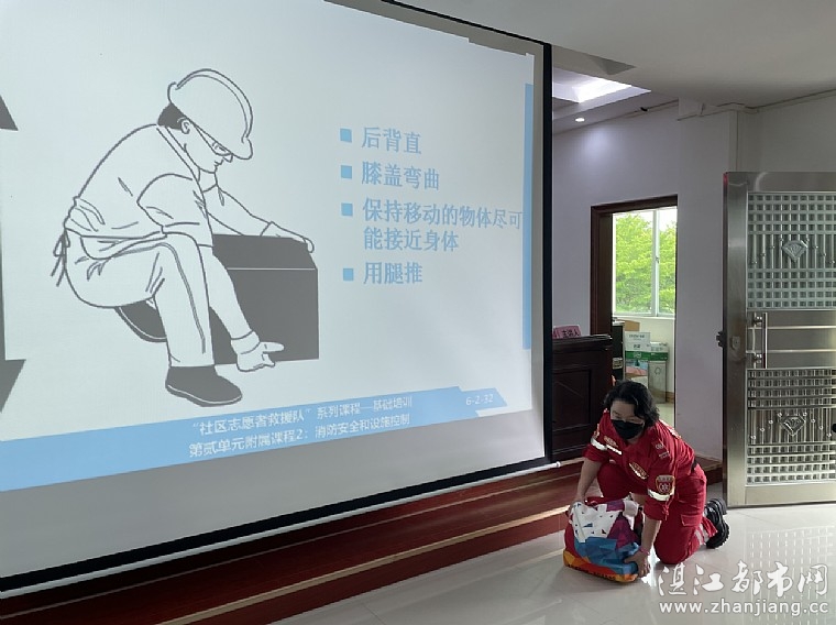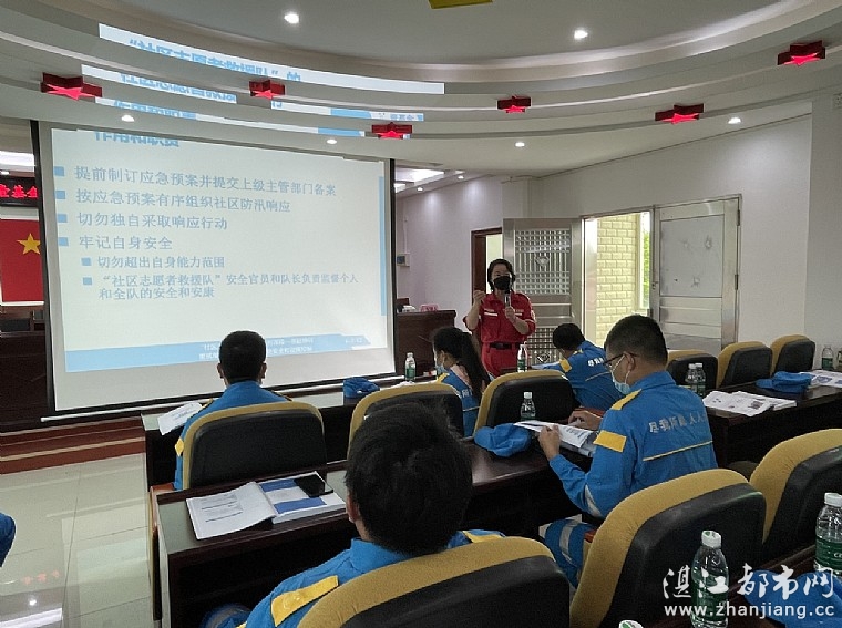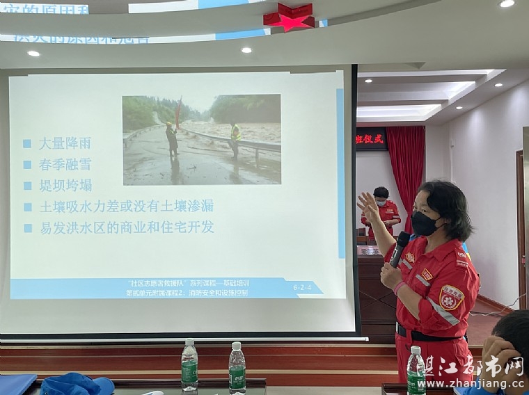 紧接着,“情暖湛江”梁佩英会长主讲《常见灾害认识与应对》。梁会长介绍灾害类型、灾害要素、灾害带给全球的损失、我国的自然灾害与灾情和受灾人群的权益等知识。她引导志愿者救援队员认识社区面临的主要自然灾害、应对方法和社区志愿者救援队的职责,让他们认识本社区的灾害治理现状,熟悉各种社区主要灾害的常识。
