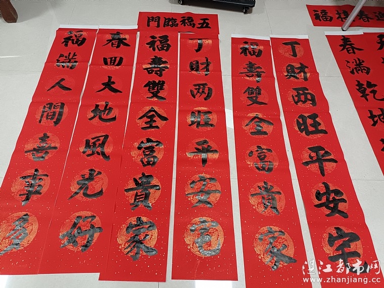 活动邀请坡头区书法家协会的书法家、书法爱好者汇聚一堂,挥毫泼墨,将美好祝愿化作一张张寓意吉祥的“福”字和一幅幅喜庆祥和的春联。