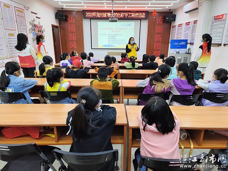 为了让小朋友们感受到春天的美好,丰富他们的想象力和创造力。2023年2月19日由麻章区志愿服务总队、湖光镇团委、湖光镇创文办、湖光镇新时代文明实践所、湖光镇妇联、湖光镇综合文化站、湛江市情暖湛江志愿者协会、N516壹基金儿童服务站(湖光镇文化站)开展2023年湖光镇“春天的色彩”手工制作活动,共有儿童、志愿者41人参加了此次活动。