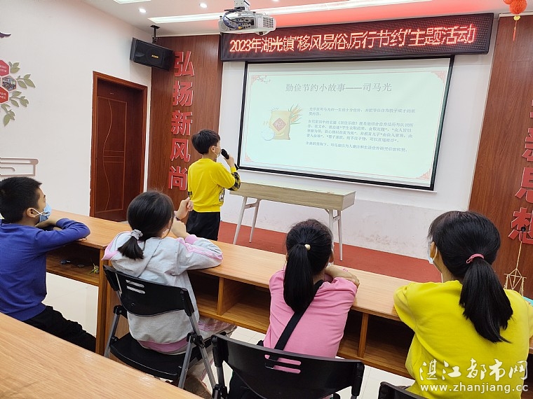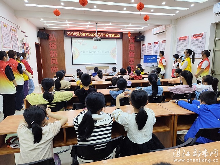 情暖湛江志愿者通过PPT向孩子们讲解勤俭节约是我国传统美德、古往今来的勤俭节约故事、常见的餐饮浪费行为误区、用实际行动践行勤俭节约等内容。
