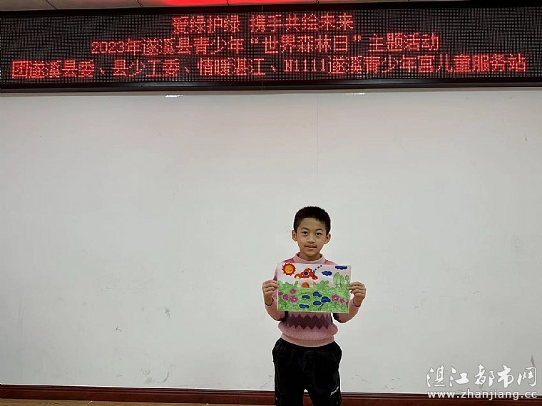 3月21日是“世界森林日”,树木森林对维护自然平衡起着十分重要的作用。为了培养孩子从小具有爱护树木、森林地意识,2023年3月19日,在遂溪青少年活动中心由共青团遂溪县委员会、遂溪县少工委、遂溪县青年志愿服务联合会、湛江市情暖湛江志愿者协会、N1111壹基金儿童服务站(遂溪青少年宫)联合开展“爱绿护绿 携手共绘未来”世界森林日主题活动。