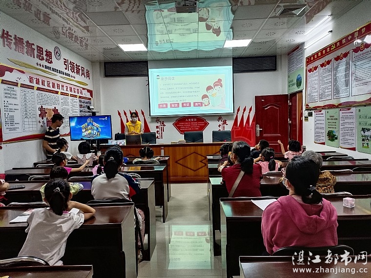 活动中,情暖湛江志愿者、新越社区儿童服务站专职老师通过PPT给孩子们介绍了世界读书日和书籍发展的历史,也提到了亲子阅读的重要性,亲子阅读能拉近父母和孩子的距离,能给孩子带来智慧、欢喜和勇气。接着专职老师分享了如何选一本好书及读书的方法。