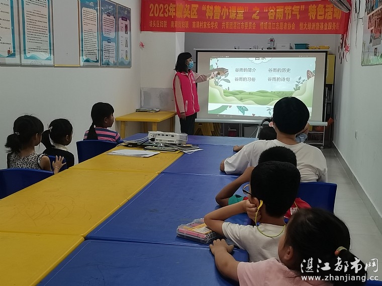2023年4月23日,坡头区妇联、南调街妇联主办,南调村家长学校、共青团湛江市委员会、湛江市情暖湛江志愿者协会、N1108壹基金儿童服务站(恒大绿洲)承办2023年坡头区科普小课堂之“谷雨节气”特色活动,共有35人参与了本次活动。