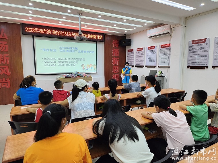 为了广泛开展民法典学习宣传,让民法典走到群众身边、走进群众心里,2023年5月27日下午由共青团湛江市委员会、麻章区民政局、麻章区志愿服务总队、湖光镇团委、湖光镇创文办、湖光镇新时代文明实践所、湖光镇妇联、湖光镇综合文化站、湖光镇社工站、湛江市情暖湛江志愿者协会、N516壹基金儿童服务站(湖光镇文化站)开展2023年湖光镇“美好生活 民法典相伴”宣传教育活动。共有儿童、家长、志愿者25人参加了此次活动。
