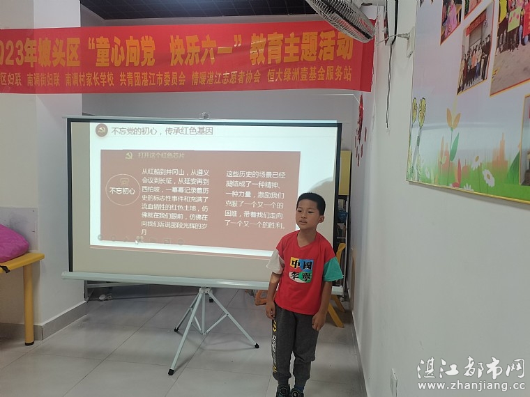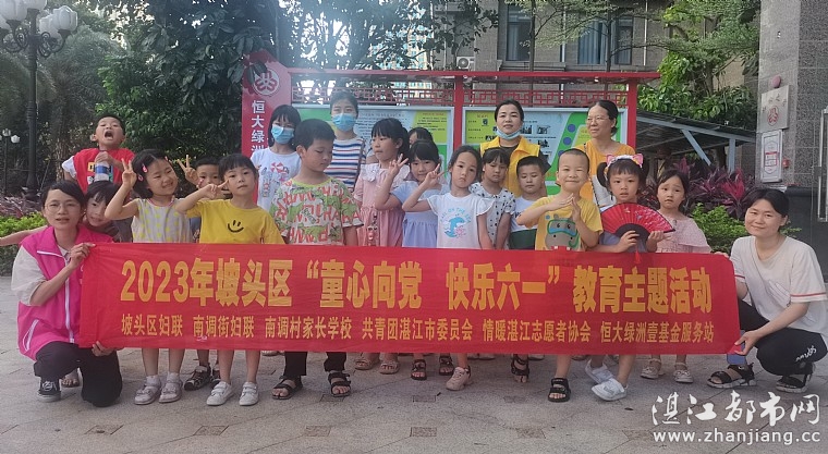 为庆祝六一儿童节,2023年5月28日下午,坡头区妇联、南调街妇联主办,南调村家长学校、共青团湛江市委员会、湛江市情暖湛江志愿者协会、N1108壹基金儿童服务站(恒大绿洲)承办2023年坡头区“童心向党 快乐六一”教育主题活动,共有50人参与了本次活动。