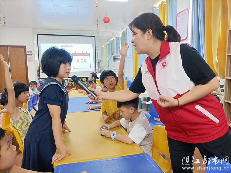 活动开始,志愿者老师用生动易懂的语言向孩子们讲述世界禁毒日的由来以及毒品的危害,如何做到识毒拒毒防毒,孩子们积极回答老师的问题,现场气氛十分活跃。