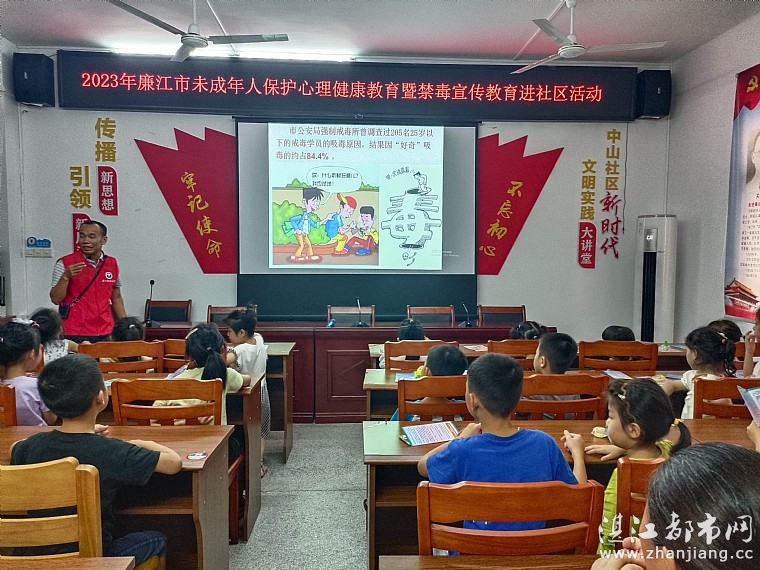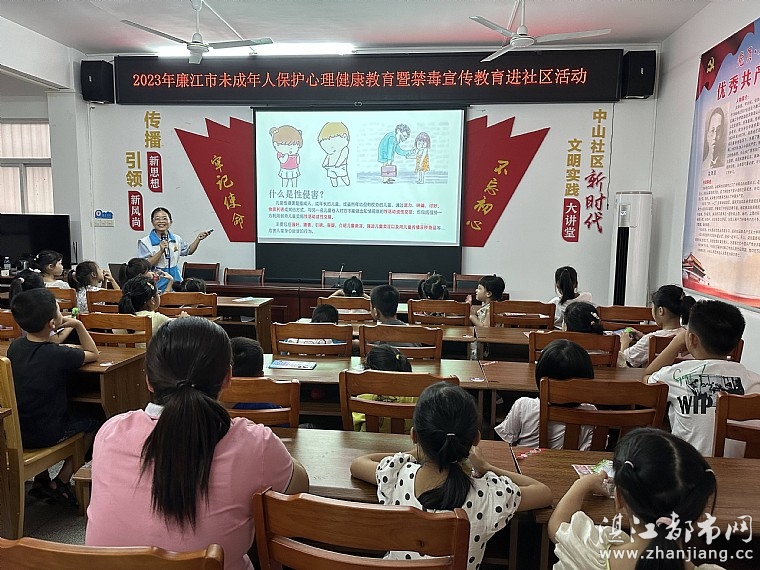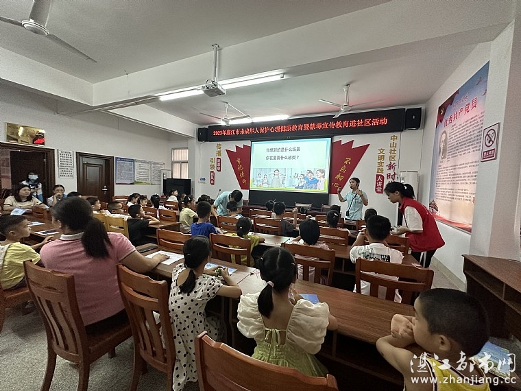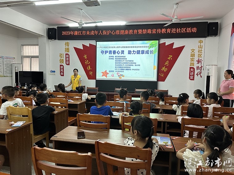 为进一步提升社区未成年人心理健康意识和识毒防毒拒毒能力,引导青少年及其家长深入认识和了解心理健康知识、家庭良好亲子关系、无毒社会、儿童保护的作用,帮助未成年人培养良好的心理品质和树立健康的生活理念2023年8月2日上午由廉江市妇女联合会,城北街道妇女联合会,城北街道关心下一代工作委员会,城北街道中山社区新时代文明实践站,中山社区关心下一代工作委员会,廉江市中山社区家长学校,湛江市情暖湛江志愿者协会,壹基金儿童服务站(廉江市中山社区站)开展“守护青春心灵 助力健康成长”主题活动。孩子、家长和志愿者共38人参与本次活动。