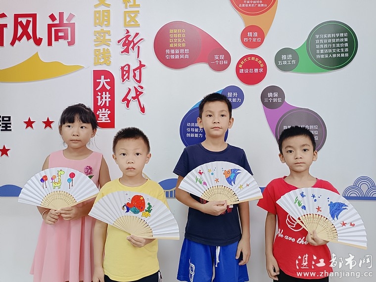 活动中,情暖湛江志愿者老师向孩子们讲解了什么是家风家训。家风是一种无言的教育,它在潜移默化中影响着孩子的心灵,塑造孩子的人格;家训是家庭对孩子立身处世、持家治业的教诲。良好的家风家训是一本既多彩又鲜活的教科书,伴随着孩子健康成长。课堂中,孩子们认真听讲,积极回答问题。接下来是涂鸦卡通扇子,由情暖湛江志愿者分发材料,孩子们拿到材料后迫不及待动起手绘画了起来,现场充满了欢声笑语。