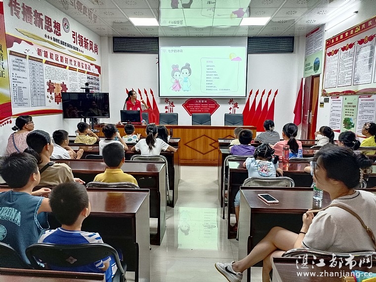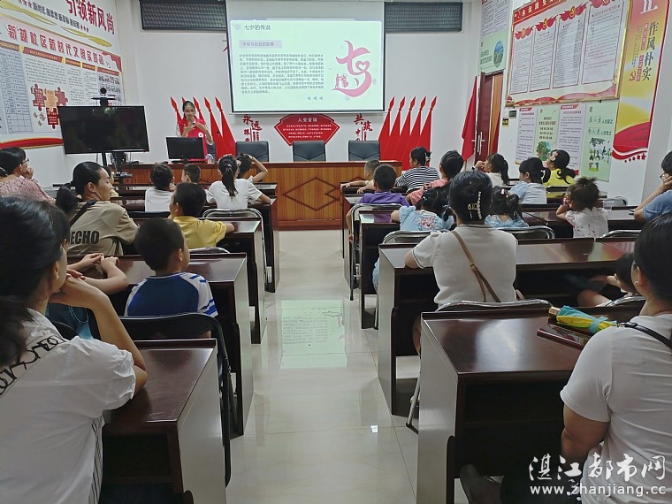 活动中,情暖湛江志愿者、新越社区儿童服务站专职老师通过PPT首先给孩子们介绍七夕节的由来、相关传统文化习俗和牛郎织女的浪漫爱情故事,现场的家长和孩子们听得津津有味。接着专职老师和孩子们赏析《鹊桥仙》、《秋夕》、《七夕》等优秀诗词,加深孩子们对七夕节日的认知的同时,也让孩子们明白:要勇于向亲人表达爱意,珍惜与家人、朋友相处的美好时光。