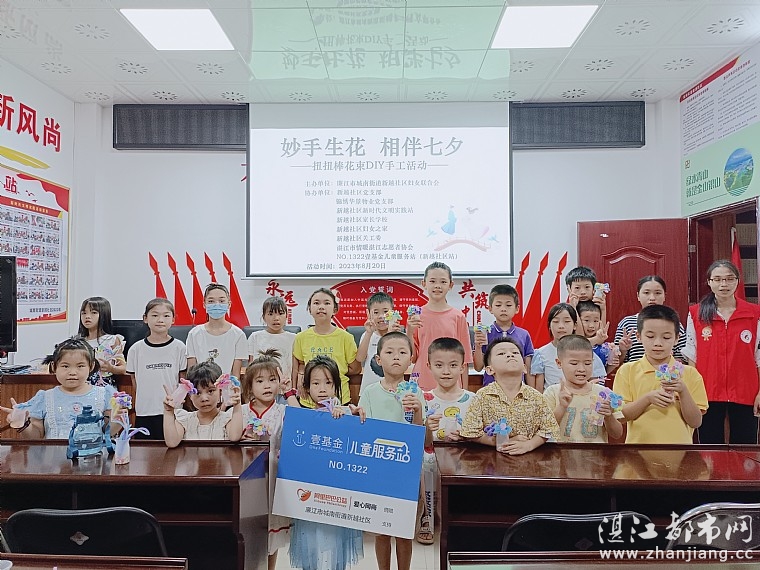 七夕佳节将至,为大力弘扬中华优秀传统文化,传承优秀民俗,2023年8月20日,由新越社区妇女联合会主办,新越社区妇女之家、新越社区关工委、新越社区新时代文明实践站、新越社区家长学校、湛江市情暖湛江志愿者协会和壹基金儿童服务站(新越社区站)协办,开展了“妙手生花,相伴七夕”手工活动,家长、孩子和情暖湛江志愿者共33人参加此次活动。