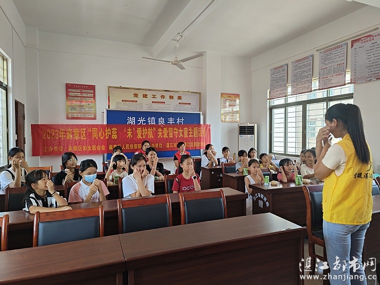 为深入贯彻落实党的二十大精神,加强青少年的安全管理有效防止留守儿童欺凌、预防性侵给留守儿童带来的危害,保障留守儿童的身心健康和全面发展,2023年8月21日下午由麻章区妇女联合会、麻章区人民检察院、湖光镇创文办、湖光镇妇联、湛江市情暖湛江志愿者协会、湖光镇良丰村委会、N516壹基金儿童服务站(湖光镇文化站)联合开展2023年麻章区“同心护蕊´未爱护航”关爱留守女童主题活动之良丰村专场,本次活动有志愿者、村干部、儿童共28人参加了此次活动。