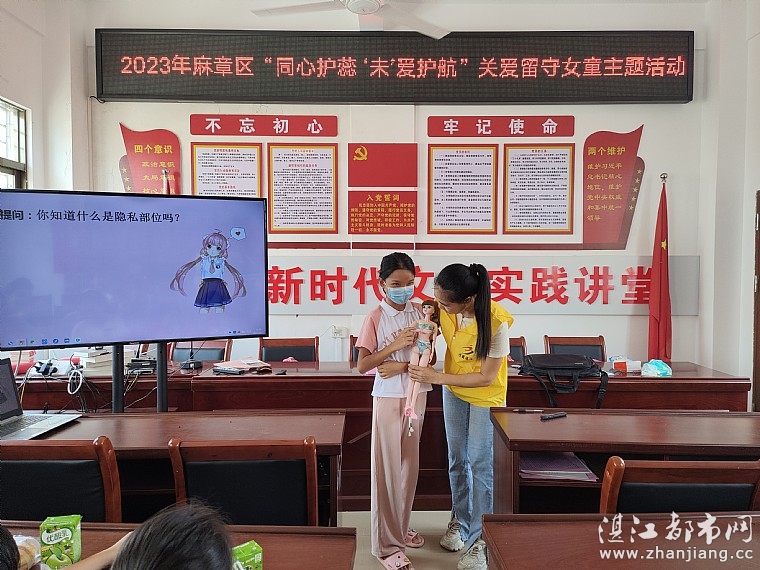 情暖湛江志愿者通过PPT课件、观看视频、情景模拟等相结合的方式从“生殖器官的区别与作用”“ 深入理解性侵害与防范”“ 妥善处理性侵害”“ 什么是生理期”“ 生理期该如何护理”等五个方面与女童们进行讲解。活动中,志愿者通过让女童认识自己的性别和身体,学习保护自己的身体和隐私,防止性侵害。志愿者反复强调女童们要记住:不得随意让别人触碰自己身体的隐私部位。通过交流互动,女童们认识到什么是性侵害,领悟了预防性侵害的知识,懂得如何识别“坏人”,如何抵制诱惑,对面对危险时如何大胆求救和勇敢站出来揭露。