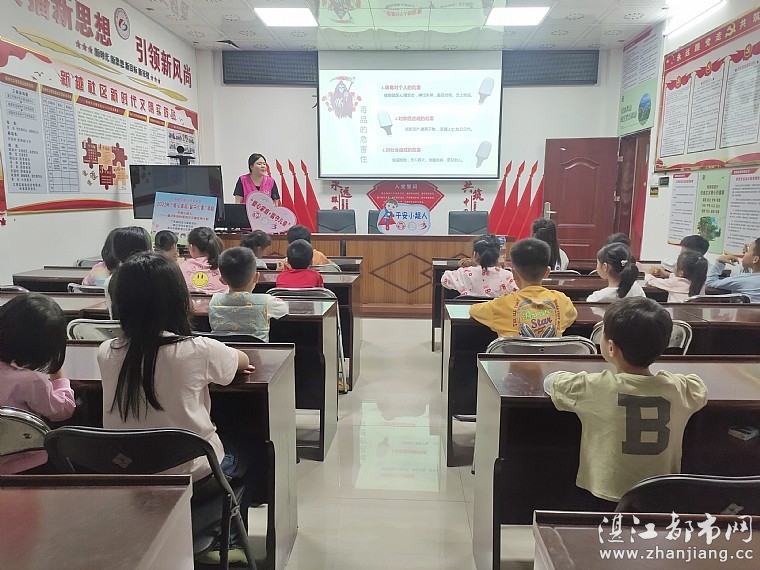 活动中情暖湛江志愿者、新越社区儿童服务站专职老师通过PPT讲解、案例分析和互动提问等方式给孩子介绍了毒品的种类、毒品的危害、未成年人吸毒的原因等内容,重点和孩子们强调要远离不良场所、面对毒品不能抱有试试没关系的侥幸心理。