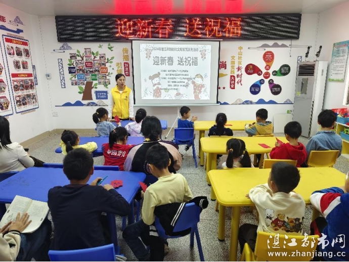 祝福语是表达爱意的一种方式,为了丰富儿童文化生活和引导孩子们主动表达爱意,2024年1月18日上午由廉江市妇女联合会,城北街道关心下一代工作委员会,城北街道中山社区新时代文明实践站,中山社区关心下一代工作委员会,廉江市中山社区家长学校,湛江市情暖湛江志愿者协会,壹基金儿童服务站(廉江市中山社区站)开展“迎新春 送祝福”主题活动。志愿者、家长和儿童32人参与本次活动。