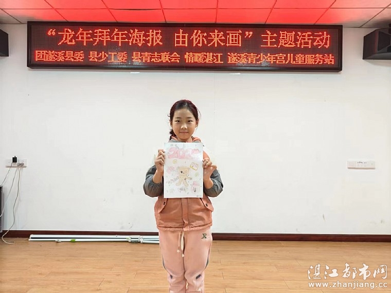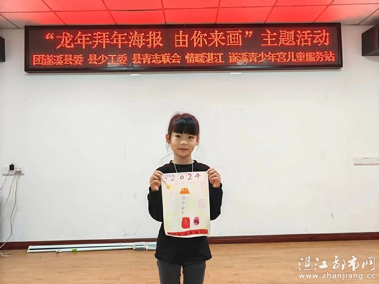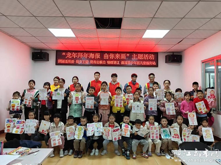 岁序更替,华章日新,2024新的一年,为了让孩子们能感受新年的气氛,提高孩子们对美术活动的兴趣,2024年1月22日上午,共青团遂溪县委员会、遂溪县少工委、遂溪县青年志愿服务联合会、湛江市情暖湛江志愿者协会、NO.1111已经儿童服务站(遂溪青少年宫)在遂溪县青少年活动中心联合开展“龙年拜年海报,由你来画”主题活动。