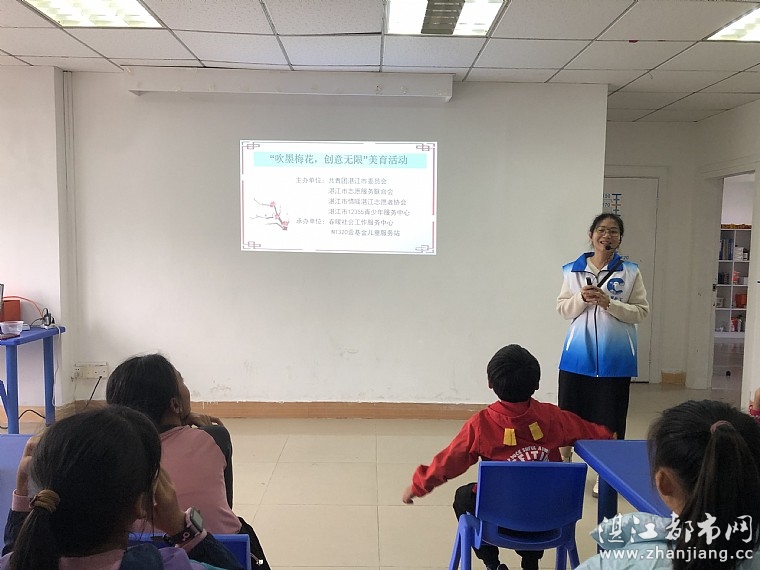 为进一步丰富社区青少年儿童的课余文化生活,培育健康向上的兴趣爱好,提高动手能力,激发孩子们的创造力和绘画热情, 2024年1月28日下午,由共青团湛江市委员会、湛江市志愿服务联合会、湛江市12355青少年服务中心、湛江市情暖湛江志愿者协会主办,春暖社会工作服务中心、N1320壹基金儿童服务站承办“吹墨梅花,创意无限”美育活动。本次活动受益学生、家长、志愿者共28人。