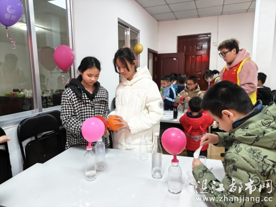 情暖湛江志愿者通过烧不破的气球、蜡烛吸水、湿不了的纸、水吸乒乓球、大象牙膏、拉不开的书、瓶子吹气球等七项趣味小实验,让孩子们通过动手操作和实验观察相结合的方式,引导孩子们学习观察方法并此现象做出简单的分析,判断和总结。
