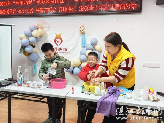 科学启迪智慧,实验带来乐趣。为增加孩子们的科学知识,培养探索精神。2024年1月26日上午,共青团遂溪县委员会、遂溪县少工委、遂溪青年志愿服务联合会、湛江市情暖湛江志愿者协会、NO.1111壹基金儿童服务站(遂溪青少年宫)联合开展2024年“两帮两促”寒假公益课程——科学实验小课堂。