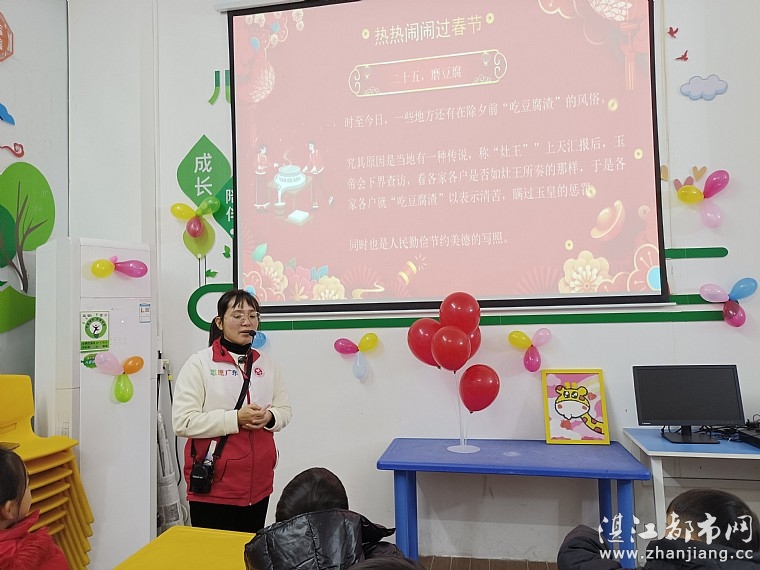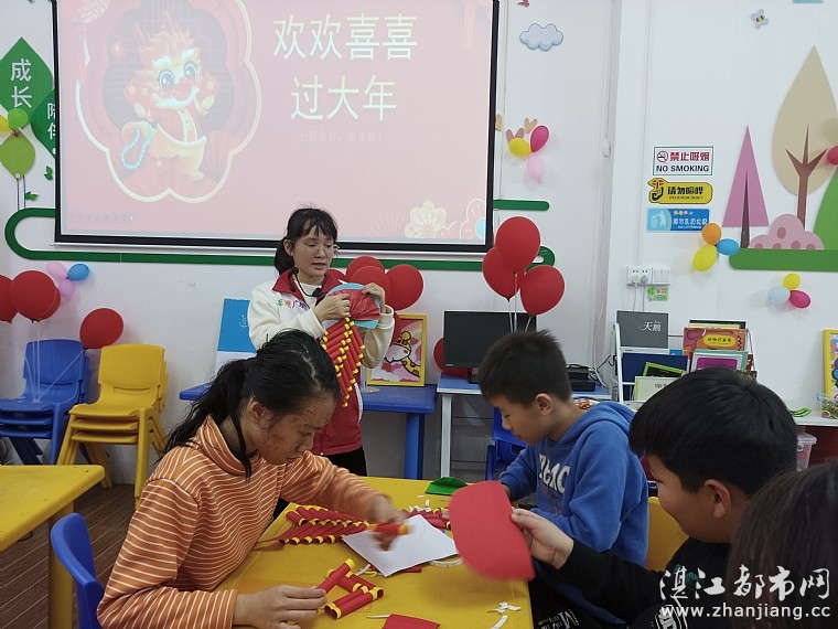 喜迎佳节,欢度新年。2024年2月4日下午,共青团湛江市委员会、湛江市志愿服务联合会、瑞景社区新时代文明实践站、瑞景社区家长学校、情暖湛江志愿者协会和N784壹基金儿童服务站联合开展“我们的节日——欢欢喜喜过大年”主题活动。本次活动参与人数36人。