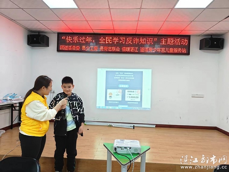 近年来,诈骗案件频频发生,诈骗手段花样百出,令人防不胜防。为提高孩子们防范电信网络诈骗的意识2024年2月4日下午,共青团遂溪县委员会、遂溪县少工委、遂溪县青年志愿联合会、湛江市情暖湛江志愿者协会、NO.1111壹基金儿童服务站(遂溪青少年宫)联合开展“快乐过年,全民学习反诈知识”主题活动。