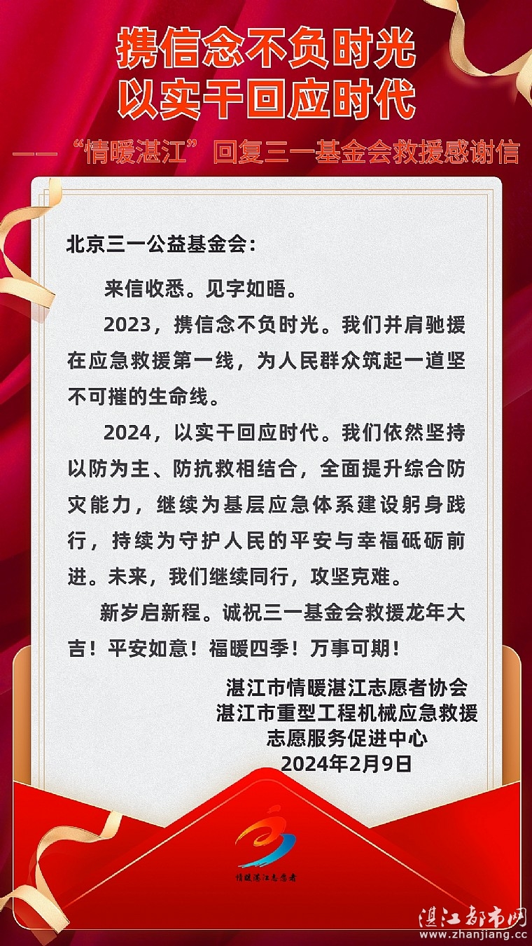 携信念不负时光,以实干回应时代 ——“情暖湛江”回复三一基金会救援感谢信