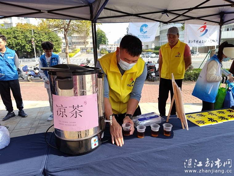 同时,摊位还提供“免费凉茶”服务,甘甜清香的罗汉果菊花茶,让人清肝明目、润喉解渴,为广大群众和服务工作者带来一份实实在在的关爱。